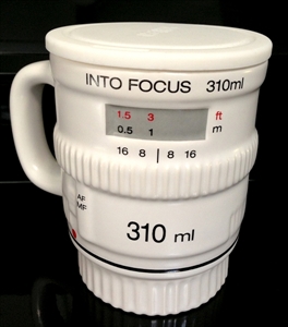 Si hace un tiempo os enseñaba el termo con forma de lente, ahora os traigo el complemento perfecto, la taza «INTO FOCUS», que también tiene forma de objetivo, el regalo ideal para cualquier fotógrafo.
