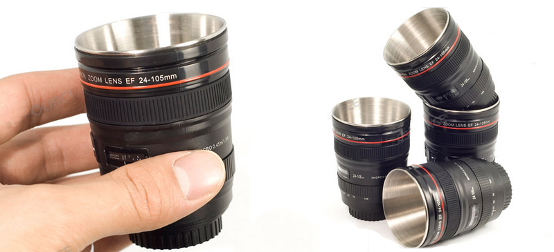 Estos son vasos de chupito imitando a lentes Canon, perfectos para una fiesta. Están realizados en su parte exterior en plástico y en su interior en acero inoxidable, para que puedas usarlos una y otra vez sin que se estropeen.